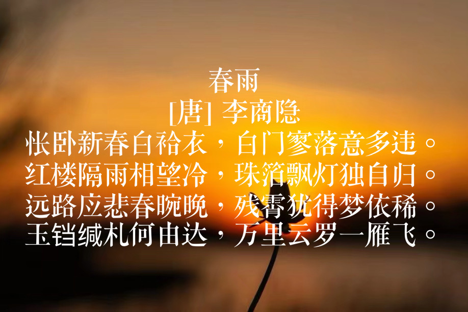 窗外下雨了,淅淅沥沥,点点滴滴。空气里泛着丝丝寒意,撑伞出门,走在街头,到处是喧嚣的人群。又快过年了,忙碌的人们似乎又多了几分欢快和放松。这个时候突然想要泡一杯茶,读一首诗,一首关于雨的诗。淋一场从塞北到江南的雨,从巴蜀寒夜到春闺天晓的雨。