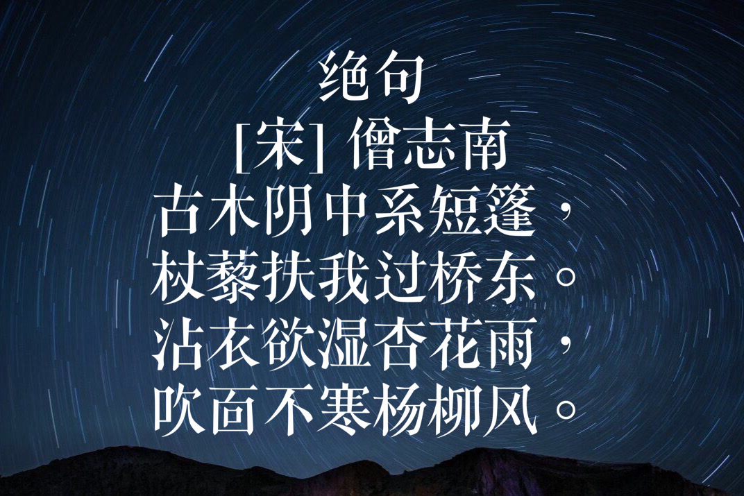 在诗人眼中,禅就在古木中、溪水里、篷船上、杖藜头,在小桥东边,在老僧心头,在杏花雨中,在杨柳风里,在那沾而欲湿的凉意中,在吹面不寒的清柔里,禅就是春天,就是一切的一切,就是绝句,就是诗!